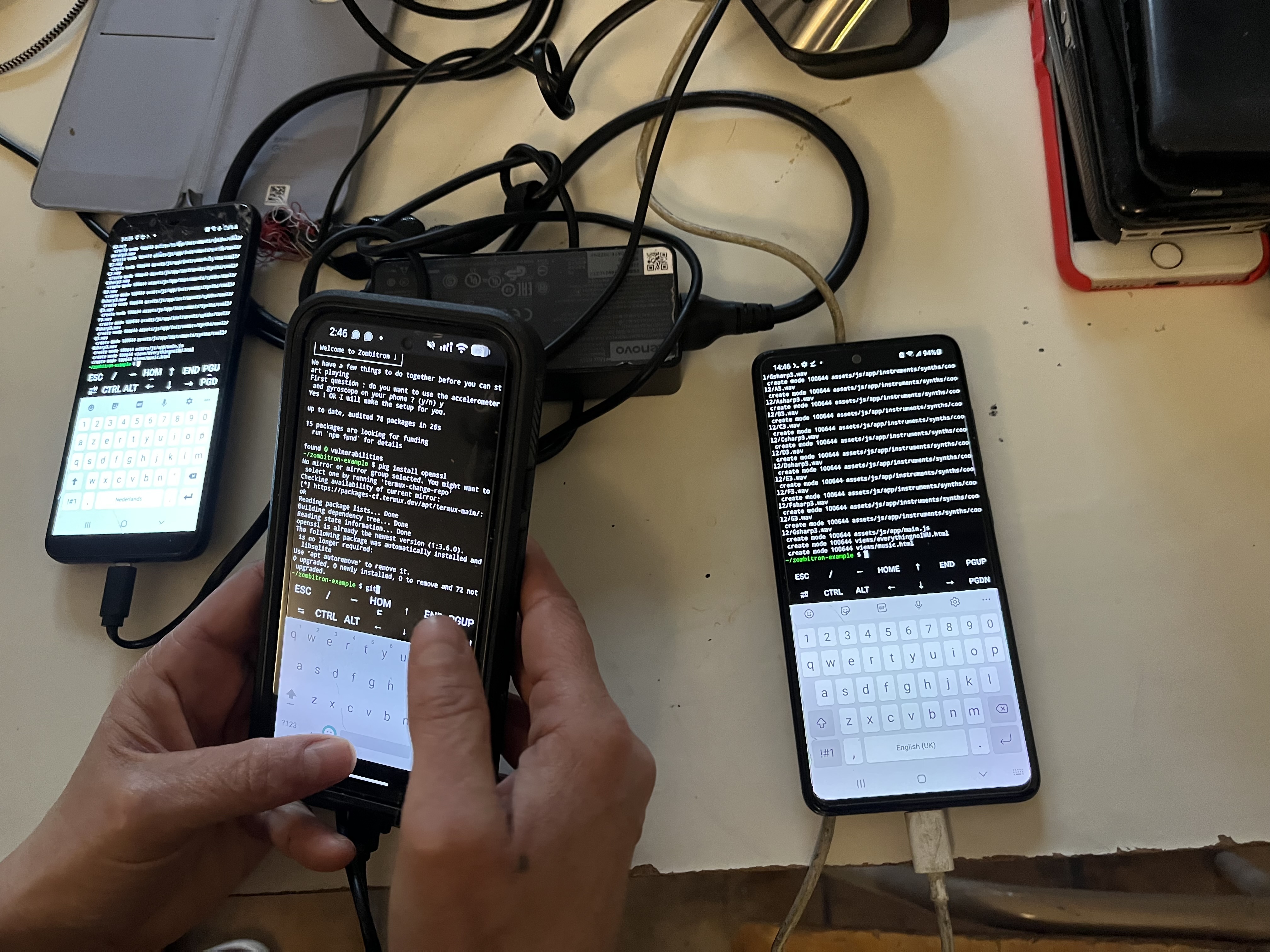 In a work that I present in more depth in this publication: Zombitron: towards a toolbox for repurposing obsolete smartphones into new interactive systems , I have started to test the approach of Zombitron on a selection of various smartphones, to document, step by step, the specifics in terms of installation and configuration that I may encounter. I collected a set of 14 smartphones that had been given to me or that I had bought cheaply second-hand. For each of the phones, I went through the different stages to set up the basis of the Zombitron principle.