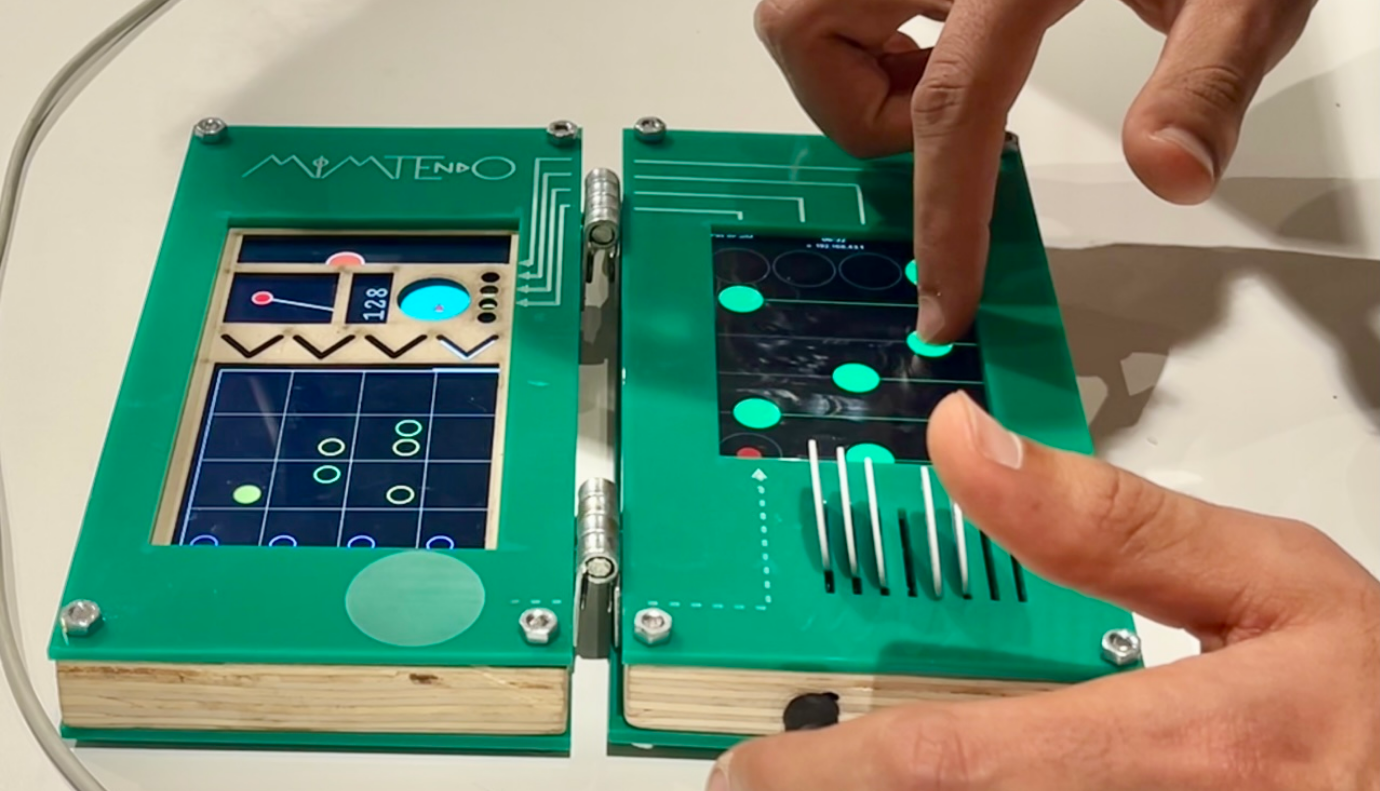 Halfway between a toy and a musical instrument, MIMTEndO allows users to explore different interactive modalities offered by sensors built into smartphones, within the limits of their computing power and overall condition.